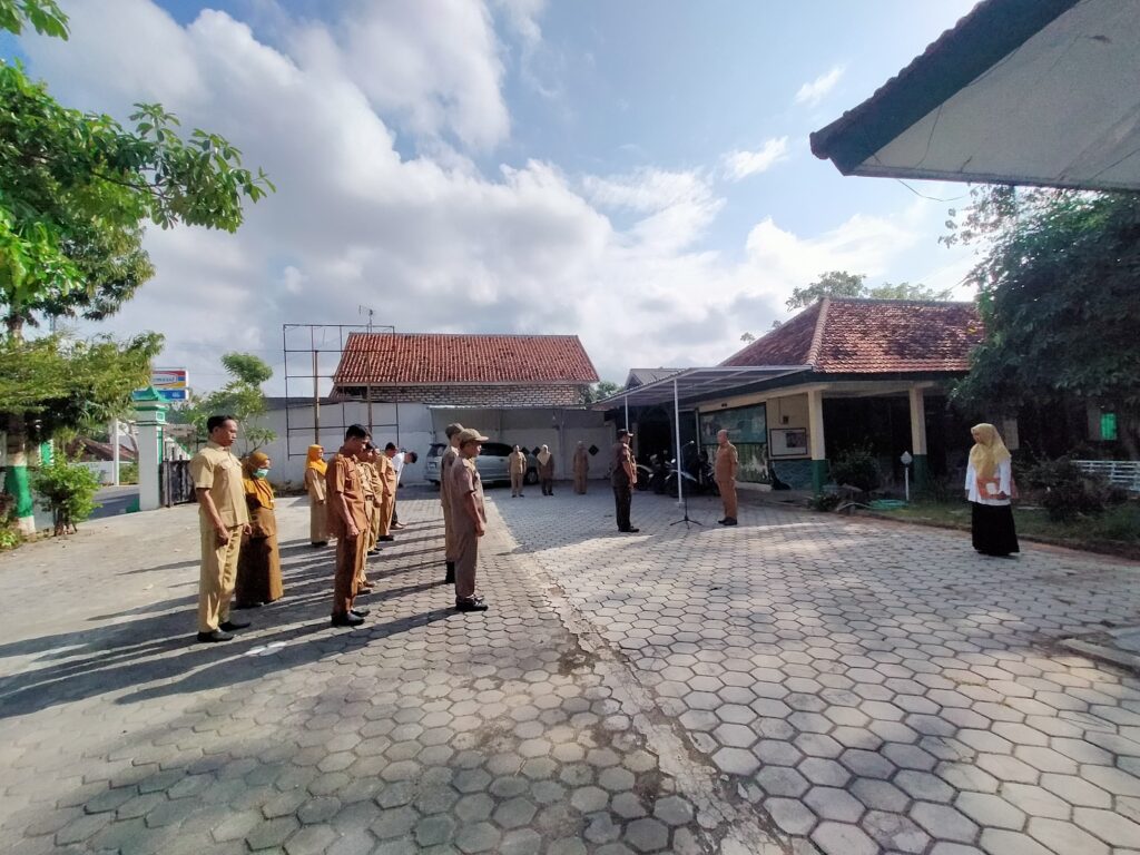 Seluruh Karyawan Karyawati Kantor Kecamatan Kadur mengikuti Apel Pagi yang di lakukan setiap hari senin sebagai kegiatan Disiplin diri dan aktif dalam kegiatan kantor Kecamatan kadur serta sebagai bentuk tanggung jawab.